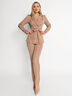 Эллегантный женский костюм с двубортным жакетом классического кроя. Аккуратный лацкан и клапан украшают жакет. Прямые брюки с клапанами по бокам. Идеальный образ для весенней поры.
