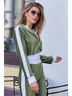 Прекрасный прогулочный костюм-двойка - брюки с лампасами на широкой резинке и бомбер на молнии. Брюки с лампасами на пике популярности в этом сезоне - них кроется особая прелесть, наверное, потому что они позволяют привычным вещам играть по-новому, более интересно. Вертикальные полоски отлично удлиняют силуэт, а это еще один плюс в копилку этой модной вещи! Бомбер с длинным рукавом и манжетами, и невысоким воротником-стойкой из контрастной ткани – прекрасный выбор на теплую осень. Городская мода приветствует комфортные и удобные модели, которые смотрятся стильно– наша новая модель – отличный выбор для активных девушек, которые любят в вещах универсальность.