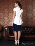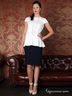 Приталенная блуза с округлым вырезом горловины и коротким рукавом. Застежка на скрытую молнию на спинке.