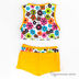Спортивная модель с резинкой для волос, функциональный топ и ультрамодный фасон шорт с контрастным поясом сделает пребывание юной модницы на пляже незабываемым, солнечные цвета актуальны в этом сезоне