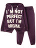 Толстовка модели "оверсайз", со спущенной проймой, рукав на резинке. В капюшоне шнур. Укороченный перед толстовки на резинке, внизу спинки декоративный вырез. Низ брюк на резинке, в поясе шнур, имеют два кармана с отрезным бочком. Костюм изготовлен из 2х ниточного петельчатого футера с эластаном. По переду симпатичный принт.
