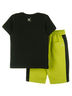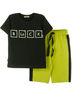 Футболка прямого силуэта. Спереди модный принт. Шорты с боковыми вставками с карманами в швах. В поясе шнур-утяжка. Шорты из петельчатого футера, футболка из кулирки с эластаном.