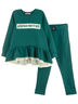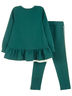 Туника с длинным рукавом, по низу баска, перед укорочен, в горловине манжет. Спереди стильный принт. Леггинсы длинные, по боку декоративный кант. Комплект изготовлен из кулирки с эластаном.