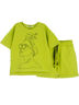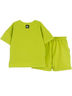 Футболка силуэта оверсайз со спущенной линией плеча. Изготовлена из кулирки с эластаном. Спереди классный принт. Объемные шорты средней длины с отворотами, с двумя карманами. В поясе регулировочный шнур. Изготовлены их 2х-ниточного футера с эластаном, без начеса.