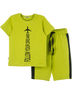 Футболка прямого силуэта. Спереди модный принт. Шорты с боковыми вставками с карманами в швах. В поясе шнур-утяжка. Шорты из петельчатого футера, футболка из кулирки с эластаном.