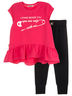Туника с коротким рукавом, по низу баска, перед укорочен, в горловине манжет. Спереди стильный принт. Леггинсы длинные, внизу на манжетах. Изготовлен комплект из кулирки с эластаном.