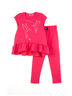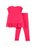Туника с коротким рукавом, спереди принт со стразами, по низу волан. Леггинсы с кантом по боковому шву.