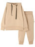 Худи модели "оверсайз", со спущенной проймой, рукав на манжете. В капюшоне шнур. По низу худи манжет. По переду карман кенгуру. Брюки на манжете, с карманами с отрезным бочком, сбоку накладной карман с клапаном. Изготовлен из футера с эластаном.