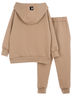 Худи модели "оверсайз", со спущенной проймой, рукав на манжете. В капюшоне шнур. По низу худи манжет. Брюки на манжете, в боковых швах карманы. Изготовлен из петельчатого футера с эластаном.