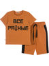 Футболка прямого силуэта. Спереди модный принт. Шорты с боковыми вставками с карманами в швах. В поясе шнур-утяжка. Шорты из петельчатого футера, футболка из кулирки с эластаном.