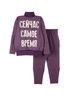 Толстовка на молнии, с боковыми карманами, рукава с высокими манжетами. Брюки на высоких манжетах, в боковых швах карманы. На спинке толстовки принт.