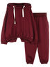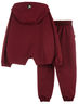 Толстовка модели "оверсайз", со спущенной проймой, рукав на резинке. В капюшоне шнур. Укороченный перед толстовки на резинке, внизу спинки декоративный вырез. Низ брюк на резинке, имеют два кармана с отрезным бочком. Костюм изготовлен из 2х ниточного петельчатого футера с эластаном.