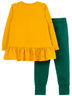 Костюм из двух предметов. Туника с длинным рукавом на манжете. Спереди принт. Леггинсы на манжетах. Изготовлен комплект из кулирки с лайкрой.
