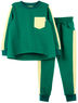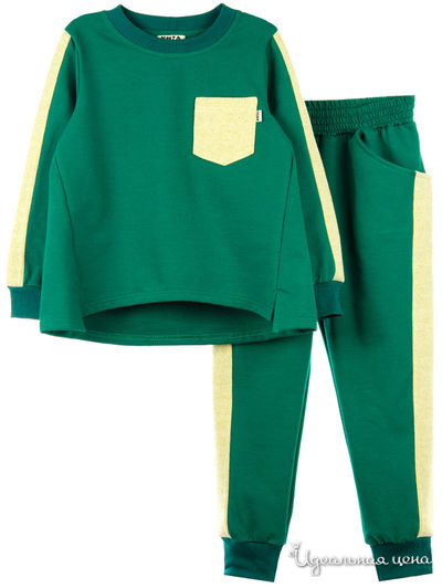 Костюм из 2-х предметов. Лонгслив расклешен к низу, на груди лонгслива карманчик. Рукава длинные с манжетами и декоративными вставками. Брюки с карманами, внизу манжеты. По бокам брюк декоративные вставки. Костюм изготовлен из 2-х ниточного футера с эластаном.