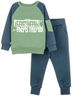 Свитшот с длинным рукавом, внизу на манжете. На одном из рукавов карман. Спереди стильный принт. Брюки с карманами с отрезным бочком. Комплект изготовлен из петельчатого футера с эластаном.