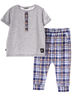 Футболка с коротким рукавом, планочка на кнопках. Ползунки-брюки на манжетах, с двумя карманами.