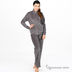 Элегантный домашний костюм без капюшона нежно-сиреневого оттенка выполнен из велюра на хлопковой основе. Мягкий воротник-стойка и прорезные карманы по бокам куртки придадут ощущение комфорта. Скрытая молния золотистого цвета дополнена стильным слайдером-логотипом LB со стразами. Левая передняя полочка куртки декорирована шитьем -логотипом с мелкими серебристыми стразами. Хлопковый пояс брюк с широкой резинкой дополнен декоративным серо-золотистым шнурком-тесьмой.