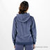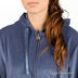 Стильный домашний костюм из мягкого велюра с капюшоном. Низ куртки, руква и пояс брюк отделаны широкой резинкой. Левая полочка куртки декорирована шитьем -логотипом с мелкими голубыми стразами. Скрытая молния куртки украшена изящным слайдером-логотипом LB со стразами. Два кармана куртки с атласной отделкой создают эффект кармана "кенгуру". Внутренняя сторона капюшона имеет атласную подкладку синего цвета. Кулиска капюшона с атласным шнурком позволяет регулировать плотность его прилегания. Пояс брюк на резинке с атласным шнурком дополнен боковыми карманами с атласной отделкой.