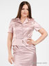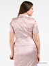 Женский костюм состоит из двух предметов. Стильный жакет с отложным воротником и короткими рукавами, застегивается на пуговицы. Талия подчеркивается поясом. Внутри шелковистый подклад. Юбка прямого кроя застегивается на молнию, сзади разрез-шлица.