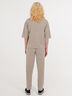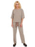 Модный женский костюм, выполнен из приятного для тела материала. Оригинальный крой. Топ с короткими рукавами и круглым вырезом горловины, прямые брюки.