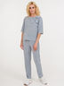Модный женский костюм, выполнен из приятного для тела материала. Оригинальный крой. Топ с рукавами 3/4 украшен объемным бантом, прямые брюки.