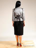 Детали: жакет застегивается на оригинальные контрастные пуговицы; дополнен атласными вставками и пояском; рукав 3/4; два кармана; юбка застегивается на молнию сзади; дополнена шлицой