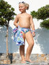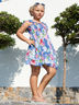 Пляжный комплект из двух предметов для маленьких леди. Платье из мягкой эластичной солнцезащитной микросетки на платочных завязках с широкой гофрированной резинкой по линии груди. Плавки классической посадки со средним боком и драпированным поясом.