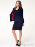 Костюм из перфорированной замши, состоящий из куртки-бомбер и юбки. Оба изделия выполнены на контрастной подкладке. Куртка свободного силуэта, с карманами в боковых швах, застегивается на молнию расположенную по центру изделия. Юбка – карандаш на поясе, длиной чуть выше колена имеет потайную молнию по центру спинки.