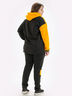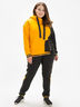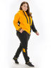 Костюм с утеплителем. Свитшот свободного силуэта, по низу и на манжетах оформлен эластичным довязом с надписью. Капюшон регулируется лентами. На полочке накладной декоративный карман на молнии. В боковой нижней части свитшота кулиса. Брюки-джоггеры высокой посадки с притачным эластичным поясом на завязках. В боковых швах прорезные карманы. Впереди на манжете вставка из довяза. Сзади карман на молнии. Длина изделия: свитшот по спинке: 73 см, рукав (от горловины): 70 см брюки по внешнему шву: 104 см, по внутреннему шву: 76 см. Параметры модели на фото: 106*80*115 см.
