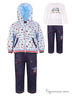 Замечательный комплект состоит из трех предметов: куртка, джинсы и толстовка. Куртка с длинными рукавами и капюшоном. Спереди присутствует застежка на молнию. Толстовка с длинными рукавами и округлым вырезом горловины. Спереди модель дополнена принтом. Джинсы выполнены из качественного материала приятной расцветки. Отличный вариант на каждый день.