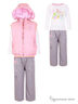 Очаровательный комплект состоит из трех предметов: жилет, толстовка и брюки. Жилет без рукавов на молнии. Изделие выполнено из принтованной ткани контрастной расцветки. Толстовка с длинными рукавами и округлым вырезом горловины. Брюки выполнены из качественного, приятного к телу материала. Отличный вариант на каждый день.