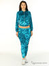 Костюм из мягкого велюра. Кофта с капюшоном. Длинные рукава украшены вставками из шелковистой ткани. Накладные карманы. Застежка-молния. Брюки зауженного кроя фиксируются на широкой резинке. Втачные карманы и боковые швы изделия декорированы вставками.