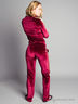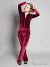 Костюм из мягкого велюра. Кофта: воротник-стоечка, длинные рукава со вставками, застежка-молния. Брюки: фиксируются на широкой резинке, втачные карманы, вставки по бокам.