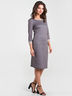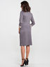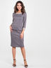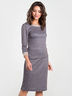 Костюм приталенного силуэта выполнено из трикотажа меланж с интересным принтом "мелкая гусиная лапка", с отделкой из однотонной ткани по горловине и низу рукава. Округлый вырез горловины обработан притачной обтачкой. Прямая юбка на поясе с резинкой.