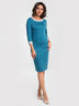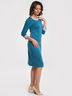 Костюм приталенного силуэта выполнено из трикотажа меланж, с отделкой из однотонной ткани по горловине и низу рукава. Округлый вырез горловины обработан притачной обтачкой. Прямая юбка на поясе с резинкой. Рукав вшивной, 3/4.