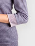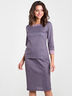 Костюм приталенного силуэта выполнено из трикотажа меланж с интересным принтом "мелкая гусиная лапка", с отделкой из однотонной ткани по горловине и низу рукава. Округлый вырез горловины обработан притачной обтачкой. Прямая юбка на поясе с резинкой.