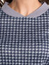 Стильный костюм состоящий из джемпера и юбки выполнен из трикотажного полотна с принтом "гусиная лапка". Оригинальность модели подчеркивает контрастная отделка. Рукава длинные, втачные. Юбка прямого силуэта, по линии талии внутренняя резинка.