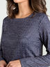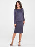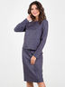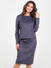 Костюм из мягкого трикотажа в полоску, состоит из юбки и кофты. Кофта прямого силуэта, округлый вырез горловины обработан потайной обтачкой. Юбка карандаш на поясе с резинкой.