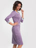 Костюм приталенного силуэта выполнено из трикотажа меланж, с отделкой из однотонной ткани по горловине и низу рукава. Округлый вырез горловины обработан притачной обтачкой. Прямая юбка на поясе с резинкой. Рукав вшивной, 3/4.