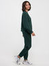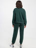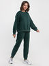 Удобный костюм выполнен из футера трехнитки состоит из брюк и свитшота. Детали свитшота: прямой силуэт, спущенная линия плеча, длинные рукава на манжете, манжеты по низу свитшота,разрезы в боковых швах. Детали брюк: полуприлегающий силуэт, притачной пояс на резинке, брючные карманы, манжеты по низу брюк.