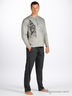 Детали: застежка на пуговицы, округлый вырез горловины дополнен трикотажной лентой, длинный прямой рукав. Брюки на плотной резинке.