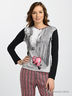 Детали: округлый вырез горловины дополнен трикотажной лентой, длинный прямой рукав. Брюки на плотной резинке.