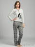 Детали: застегивается на пуговицы, округлый вырез горловины дополнен трикотажной лентой, длинный прямой рукав. Брюки на плотной резинке.