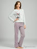 Детали: округлый вырез горловины дополнен трикотажной лентой, длинный прямой рукав. Брюки на плотной резинке.