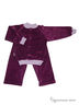 Удобный велюровый костюм состоит из 2 предметов: курточка на кнопках и штаны с завязкой. Очень простой, без лишних деталей - удобно и практично. Прекрасный выбор в качестве домашней одежды. Цвет завязки может быть изменен.