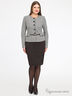 Элегантный двухпредметный костюм, состоящий из жакета и юбки. Жакет прилегающего силуэта, на пуговицах. Декоративные клапаны с пуговицей, в комплект идет тонкий ремешок.