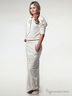 Женский домашний костюм из флиса. Накладной карман юбки и спинка джемпера декорированы крупными декоративными нашивками с цветочными принтами, имитирующими вышивку крестиком.