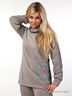 Женский брючный домашний костюм из флиса, скомбинированного с трикотажным полотном тон в тон. Полочку джемпера украшает декоративная нашивка с цветочным орнаментом, имитирующим вышивку крестиком. Кокетка и стойка джемпера также украшены принтом.