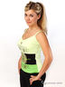 Майка приталенного силуэта, на тонких бретелях. Горловина V-образной формы, обработана бейкой. Полочка резная, состоит из трех частей. Бриджи с заниженной линией талии, на широком поясе, на передних половинках обработаны прорезные карманы. Печать располагается по центру полочки.