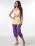 Домашний костюм – майка и бриджи выполнен из трикотажных полотен-компаньонов. Полочка майки декорирована цветочным принтом, создающим эффект запахивающегося лифа с кружевным низом.